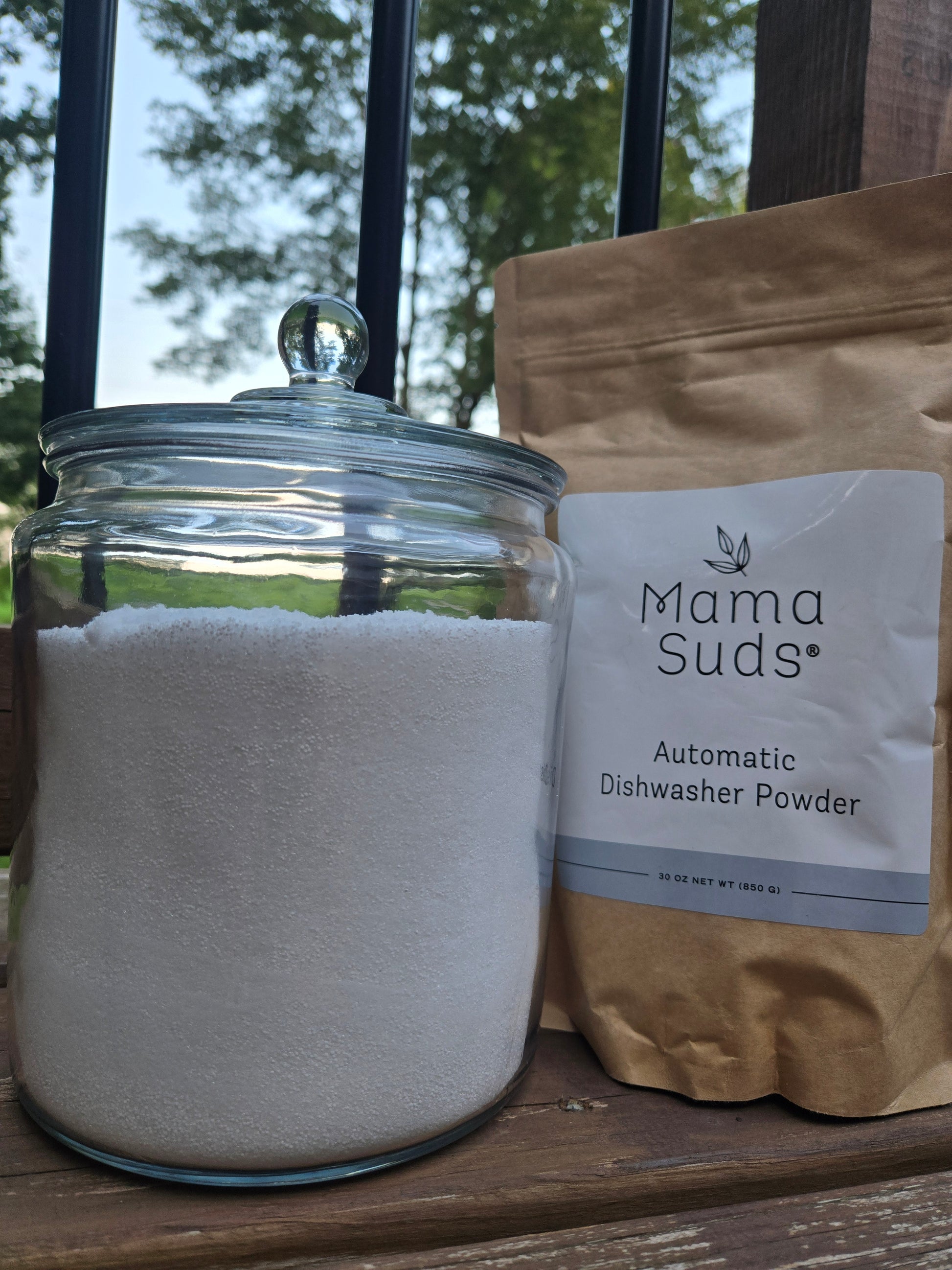 Feel good running your dishwasher with this automatic dishwasher powder! This 100% biodegradable, eco-friendly, safe ingredients is from MamaSuds - and it will leave your dishes sparkling! Sold by the ounce.
